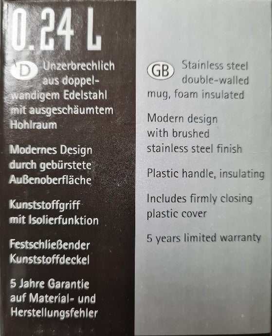 Edelstahl ISO Becher kalt und warm mit Deckel 240 ml (A)